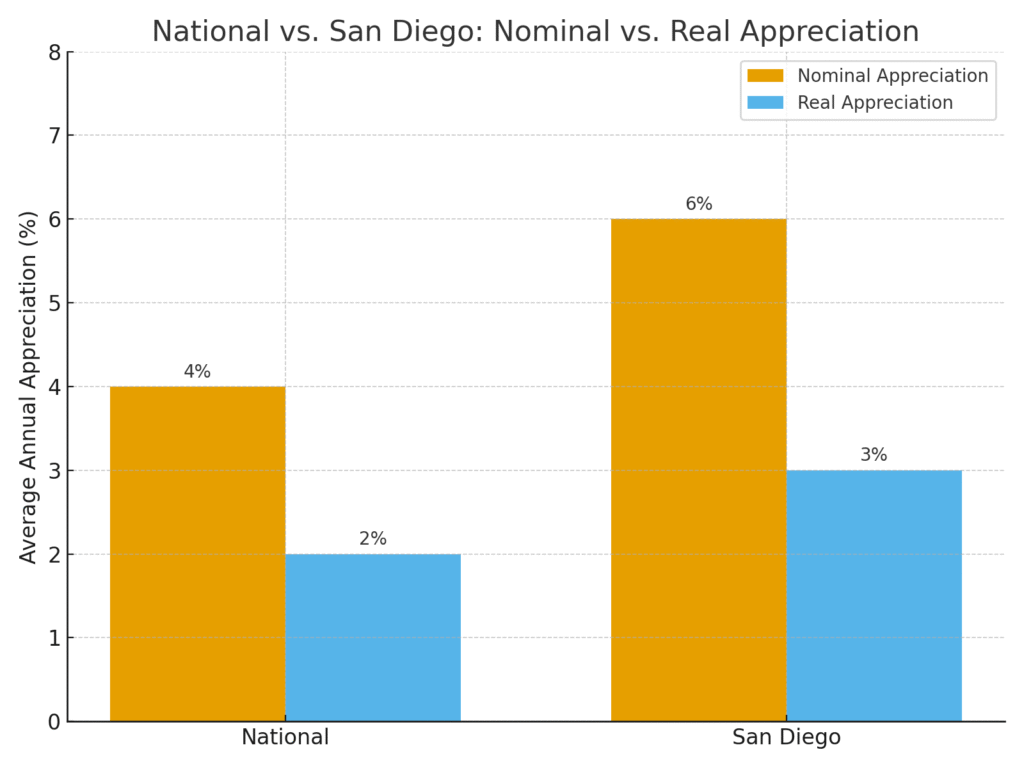 In San Diego, home prices often rise faster than inflation — but not always. Knowing the difference between real and nominal appreciation can help you make smarter real estate decisions.